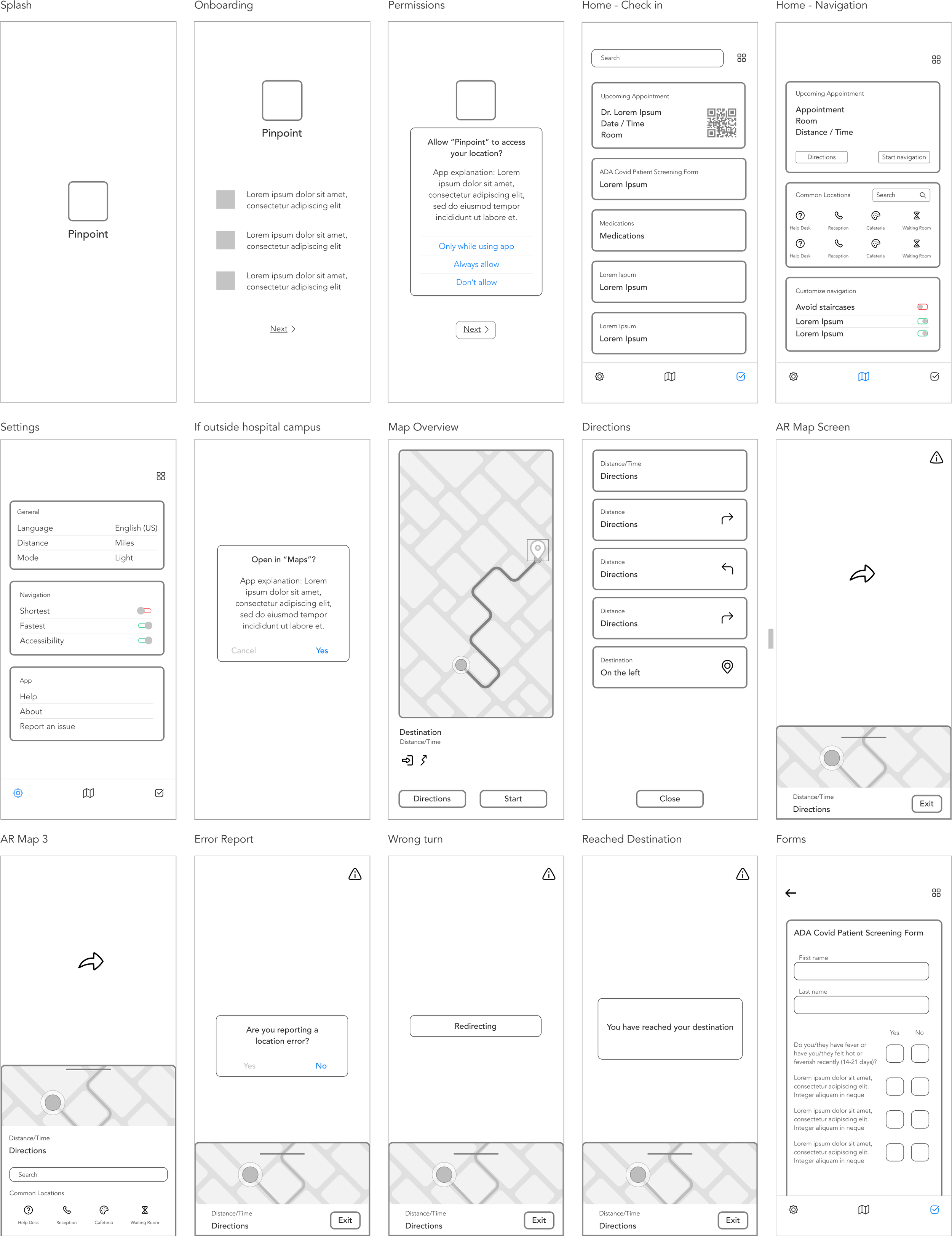 To gain a deeper understanding of user needs, I visited the Princeton Medical Center and the Brooklyn Hospital. Both spaces had adequate signage directing visitors at the entrances but after a few turns, navigation got a bit tricky. I was able to locate a digital kiosk at the Princeton Medical Center but due to hallway closures and a detour, I had to ask for help from hospital staff.